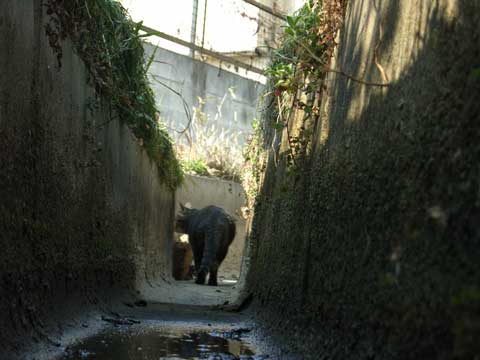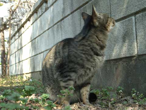 塀の上に退散しますが、やっぱりお手入れ。