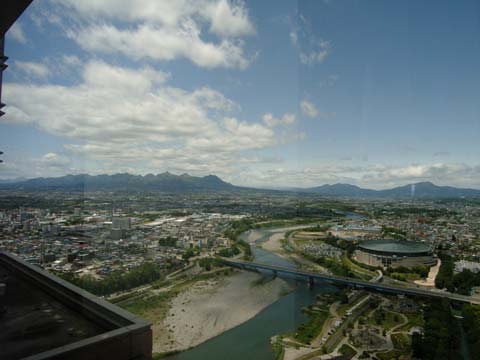 ところで今日は強風のおかげで空気が澄んでいたので、県庁まで出かけてきました。 ガラス張りのエレベーターで一気に32階まで。(汗