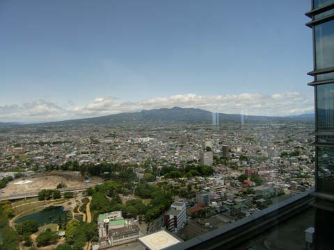 同じく北側、右のほうを向くと 手前の幸の池から赤城山までビルが建ち並んでいますね。 (持っていたイメージではもっと田んぼが多いはずだった)