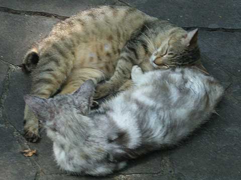 いつからこんなにベッタリになったんでしたっけ。 よくくっついてます。チョコさん(手前)ジャニーさん(奥)。