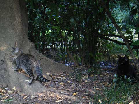 午後は猫の森へ。赤く色づいているのはハナミズキです。