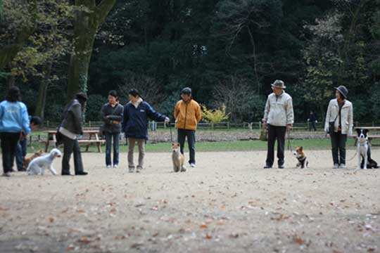 チビちゃんが見ているのは“わんこ学校”の授業です。“待て”の訓練みたいでした。