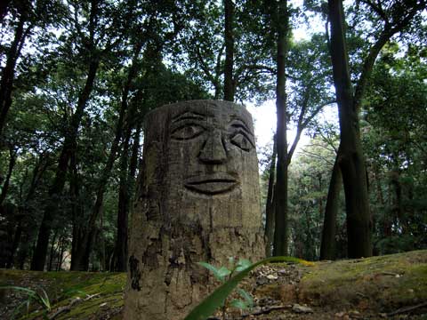 今年初の猫の森です。 天使の階段を登って行ったら、人面切り株を見つけました。 どなたの作品でしょう?