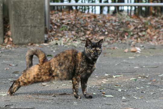 その北門を入ったあたりに、昨日初めて会った三毛猫さん。 懐っこい子です。どんどん寄って来てしまうので昨日は撮れなかったくらい。