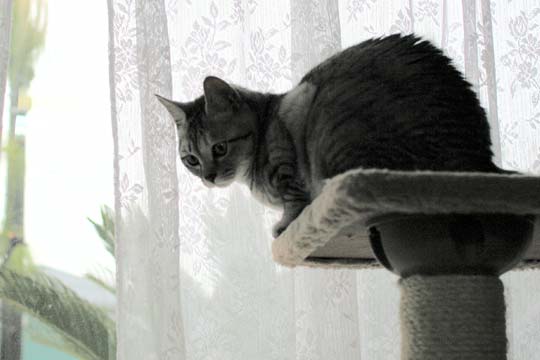 さて、ちぃちゃんです。 キャットタワーに登って