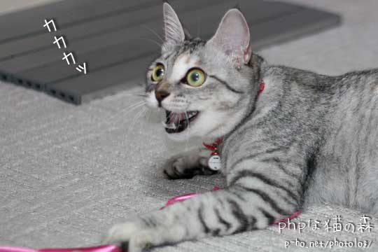 ところで最近ちぃちゃん遊びっぱなし。 睡眠時間が足りなくね?まぁ、昼間は寝っぱなしなのかもしれないが。 写真はリボン遊びに大喜びしてカカカッ。