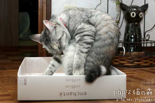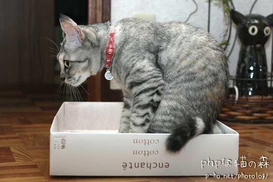 かのんちゃんの内祝いにタオルセットいただきました。ありがとうございますぅ。 で、箱のフタですが 「こんなものでも置けば入るかなー」 実験開始!