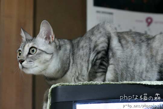 近頃ちぃちゃんジャンプ力が増したのか、 今まで上がろうとしたことがなかったところに上がる。 テレビの上はばあちゃんが小さな花瓶など置くので危険である。