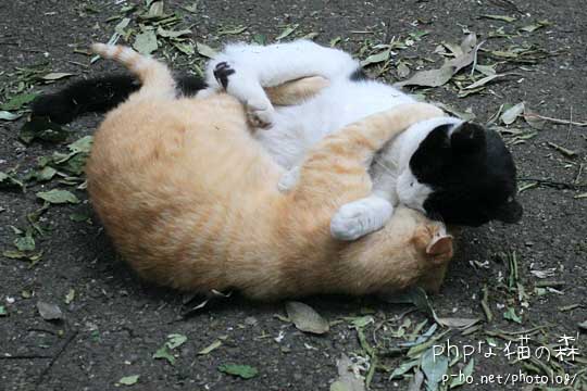 はっちゃんとまーとらがだんごになって遊んでいた。