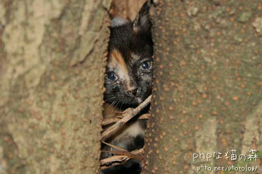 木に登るや穴の中に消えました。