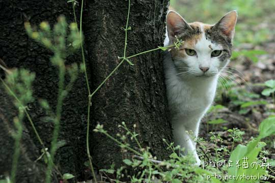 しばらく遊ばせてもらっていると猫おばさんが来たので大きな切り株を後に。 しげみさんに会いました。