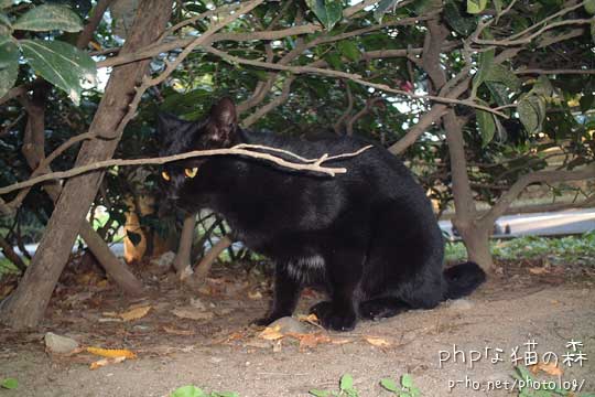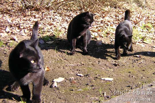 むかしむかし、まだphpな猫の森を始めるずーっと前のことだ。 私が保存してある写真の中で、猫の森で最初に撮影したものである。2003年10月26日撮影。 北門の外に黒猫軍団が生活していた。