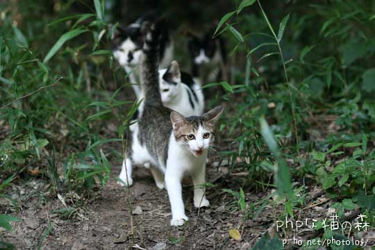 秘密の猫道ではぞろぞろ連なって降りてきた。 ワカちゃん、マナベちゃん、ハナさん、あごたん。