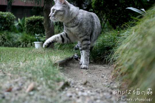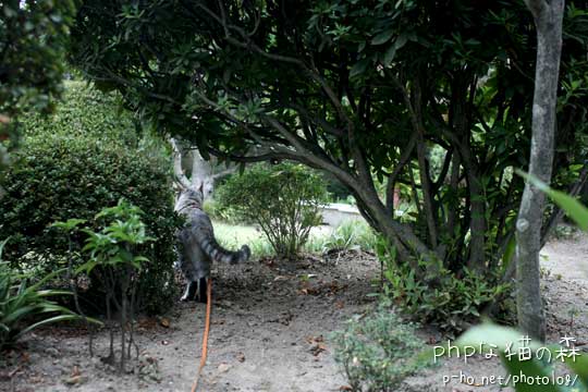 庭を散歩中も私はついて行くのが大変なので、リードをはずしてあげた。