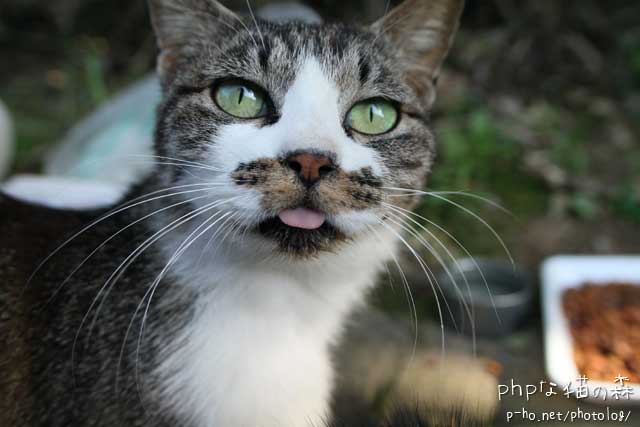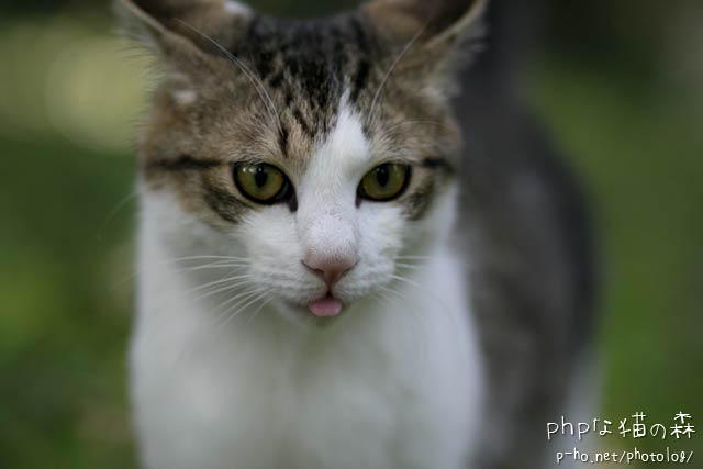 秘密の猫道ではワカちゃんがぺろっ。 こちらは連写した途中に一枚だけ舌を出したのがまぎれていた。