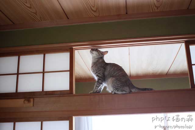 なんと掃除のためにいつもより手前側に移動してあったキャットタワーの上から飛び移ったのだ。 ウチのキャットタワーは楽々移動タイプだかんね。^^