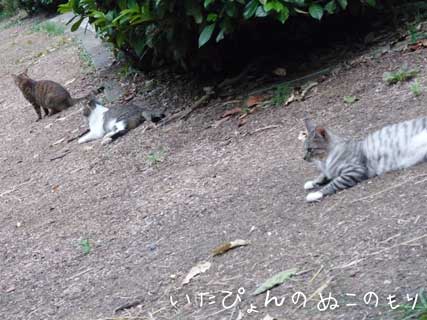 お腹が白いしましまのコとほか数匹