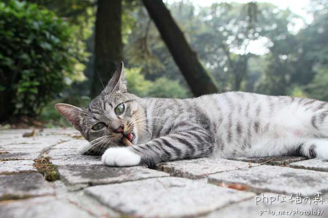 データベースといえば、先月初めて会ったこの子。今日も藤棚あたりで会った。 額にバーコードのようなシマシマがあるので“ラッシャー”と名付けよう。