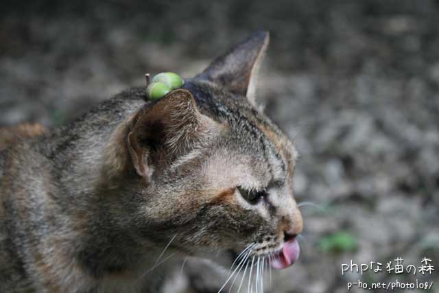 頭にどんぐりを乗せたねっこちゃん。秋だにゃ~。