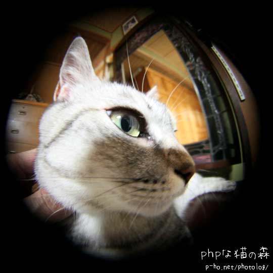 魚眼レンズをつけてちぃを撮影していた。