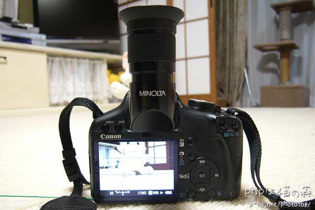 は、ともかく今日は機材のご紹介。 私のKiss X3につけっぱなしになっているのはミノルタのアングルファインダー。 ローアングル(猫目線)撮影の強い味方です。