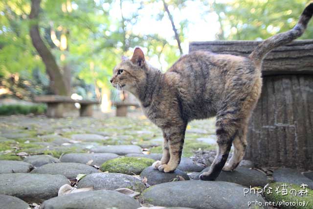 敷石の位置に合わせて足を置いたので、変な格好になったねっこちゃん。