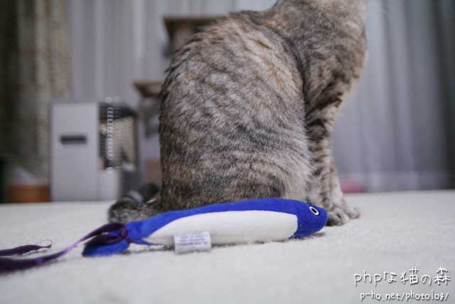 ちぃが捜し物をしていたので、おもちゃ箱からおさかなさんを出してあげた。