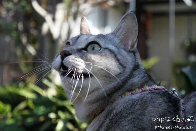 隣の家の木に来ていた鳥さんを見て「カカカッ!」。