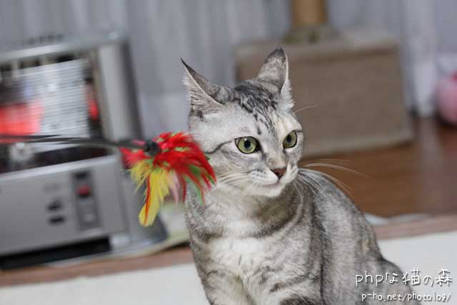 さあ、新カードでの初撮りは、ついでに購入してきた羽のじゃらし棒。