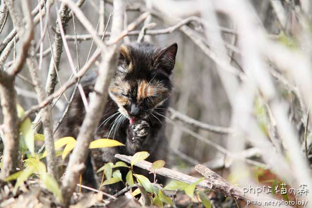 そこへ橋の脇からひょっこり出てきたビッくりくん。 んなことで、ざっと本年初の猫の森巡りを終えたのでした。