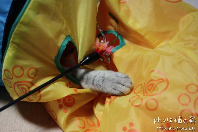 トンネルスパイラルとシャカシャカ通り抜け袋が合体♪ いつもキャットタワーの穴に感心している私ですが、トンネルはそれ自体が穴で出来てる。