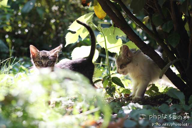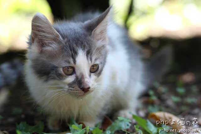 それにしても子猫は小さすぎて撮りずらい。いつものアングルだと草しか写らない。