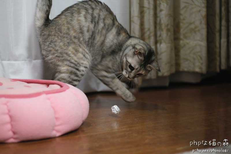 銀紙を投げてあげたら洋間に消えた。銀紙は洋間のほうがうまく滑って楽しいのだ。 が、2分もたたずに手ぶらで帰ってきて、また好き好き攻撃をするのだった。 年末年始の間はいっぱい遊んであげたので、ひとり遊びをする必要もなかったからね。