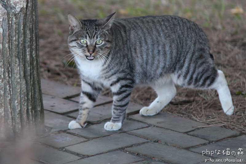 広い猫の森公園ですが、北入口のさらに道路の反対側から道路を横断しようとしていたしますけ。 かなーり危険な状況で、車にはねられるかと思った。森からは出ないほうが安全ですよー!