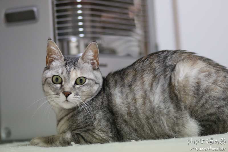 腹の足しになるわけでもないし、またたび効果はまったく見られないちぃですが、 (背を向けたストーブの火が消えてしまったことには気づいていない。石油を入れなくちゃ。)