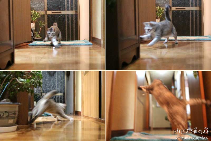そんなころ、ちぃは廊下で丸めた銀紙遊び。