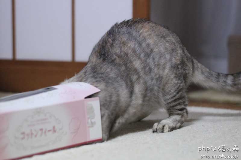 この季節、とーちが使いまくるので消費が激しいボックスティッシュ。 いちおう空箱なので捨てる前にお約束としてちぃに貸し出しますと