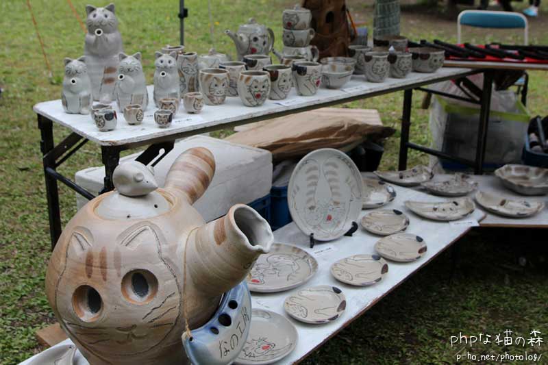 出展者様の名札を見てこなかったけど。 ↑と思ったら、写真中に入っていました。栃木の「なの工房」さん、益子焼きのねこさんたちです。