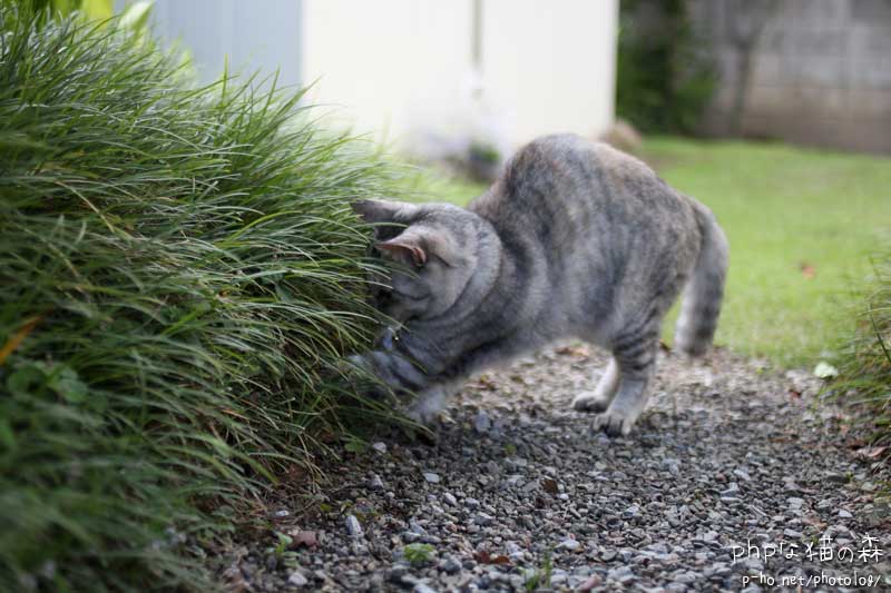 森に行くと、隠し砦からおじさんの丘方面に歩いて行くセレブを発見。 呼んでも反応ないので、シャッターを切ったら振り向いた。 呼んでもこない森の猫には一眼レフのシャッター音が有効です。