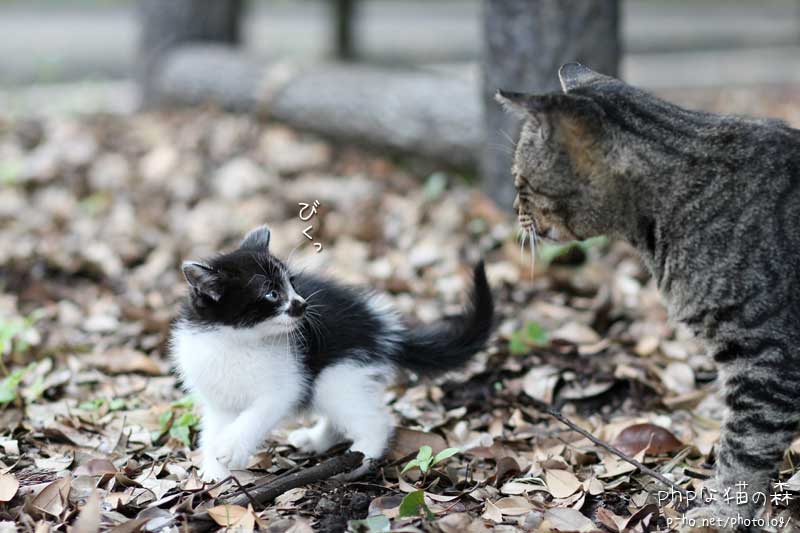 大きな切り株エリアに人だかり。いよいよ子猫のお披露目かと思いきや捨て猫だった。