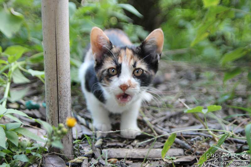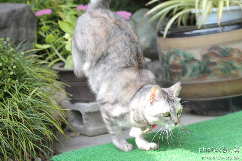 榛名行きの前、森に寄りました。みーみけの子“アーミー”ちゃん。 あくびちゃんが積極的に前に出てくる役割でしたが、今日はこの子のほうが。 たんに腹へってたからか。