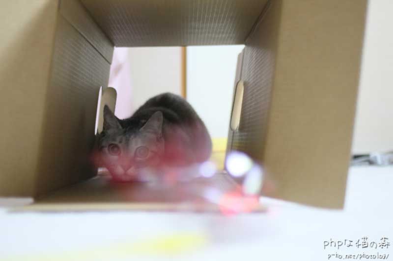 トンネル状の箱が届いたので(違う^^)さっそくトンネルごっこ。 シュイーーンと新幹線のごとく走り抜ける。