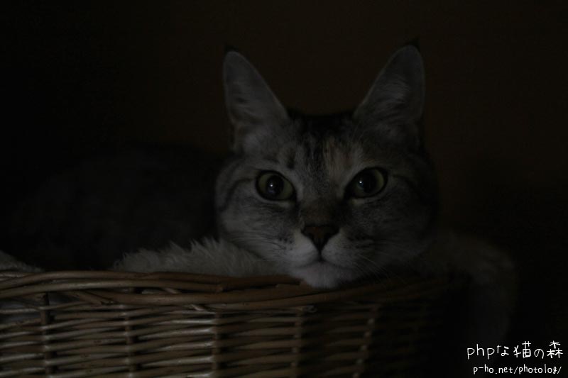 じゃあ、しょーとーっ。 まだ8時前なのに電気を消されたちぃもびっくり。(ウソです、露出をマニュアルにしました^^;)