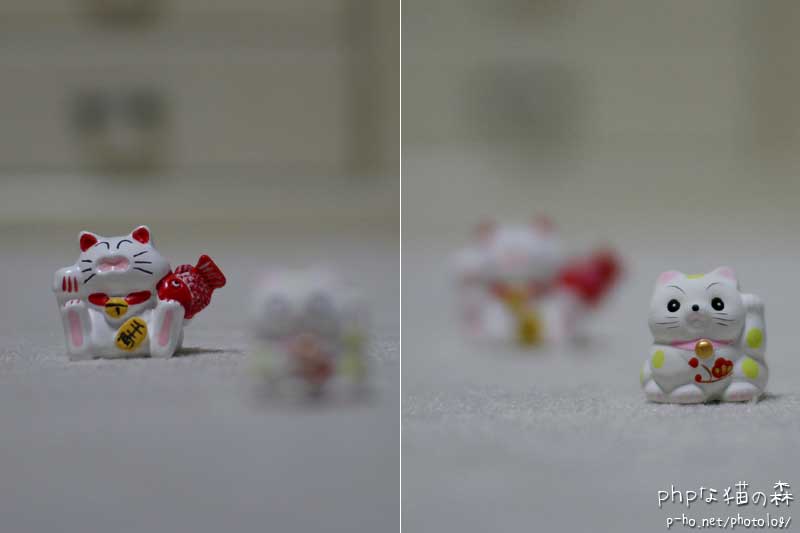 このレンズ、ずっと気にしていたので評判はいろいろ聞いていたのですが 最も心配だったピントの問題。おみくじ猫さんを10cmほど離してテストしてみました。