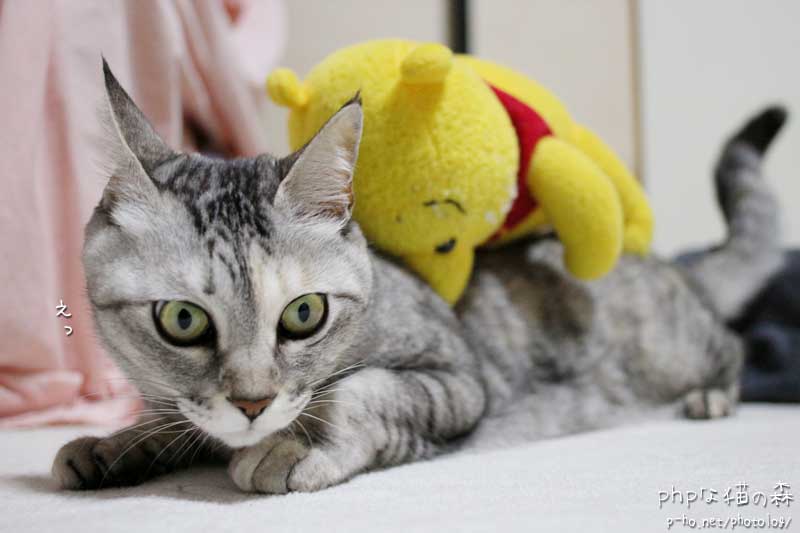 仲良しのぷーちゃんなので、無下には落とせない。 コタツの中で足の上に乗られた、とーちの気持ちがわかるでしょ。