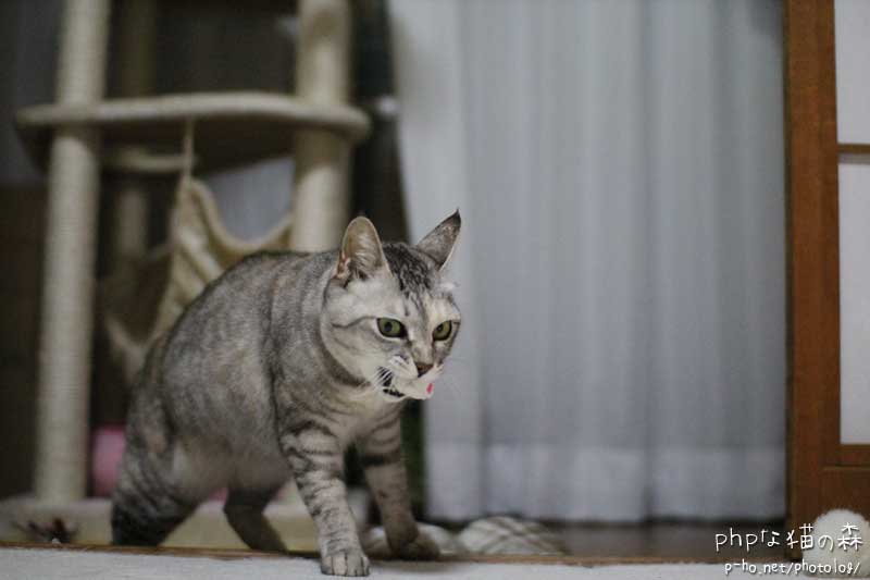 もうひとつの特徴。電話台下の(何故ここに穴があるの?)穴にねずみさんを追い込んでは