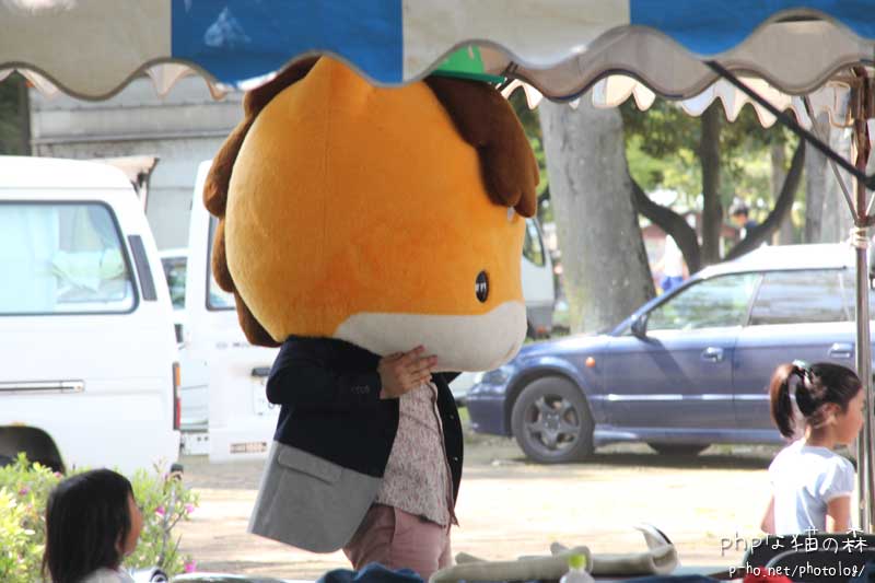 今日はいつもの森で最大級の人出になる「森とオーケストラ」というイベントが開催されたので、 例年のことですが、終わった頃をみはからって。 でもまだ、余韻を残すぐんまちゃんに会えました。昨日は波志江沼、今日は森へと忙しいですね、ぐんまちゃん。