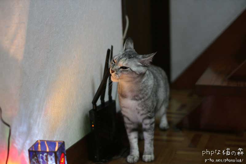 新しくなった無線LANルータも狙っている。ちぃのビビビアンテナより1本多いんだぞ。 パソコン3台あるからな。(そーゆー問題だろうか ^^;)