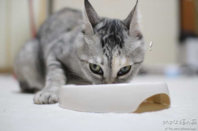 一息つくと、空の食器を眺めてため息をつくので(いつものことです)フリスキーをちょっと入れてあげる。 そこへカミナリさま一発!
