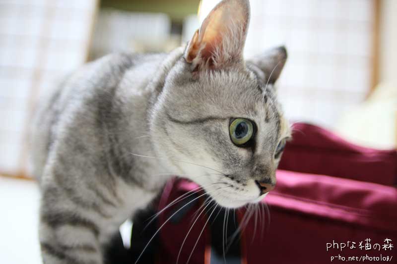 それが済むと今度はバッグの周りをうろついてフリスキー待ち。着替える暇もありゃしない。